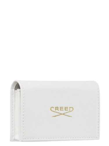 Offered are stunning CREED logo embossed white leather wallets in Saffiano leather. Enclosed within are 8 sample sizes of the following Creed women’s fragrances in 1.7ml sprays: