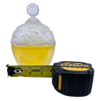 Offered are medium size factices (display bottles), sized 7" tall and 4" wide. The body of the bottle is glass and the top and frosted flower portion are hard acrylic. These are NOT FILLED WITH PERFUME, but filled with colored water, which will be emptied out and shipped in a secure container. The tops for the factices are not secure. These factices are in excellent condition, wiith no chips or discoloration of the acrylic. The price includes complimentary shipping. Simply beautiful!