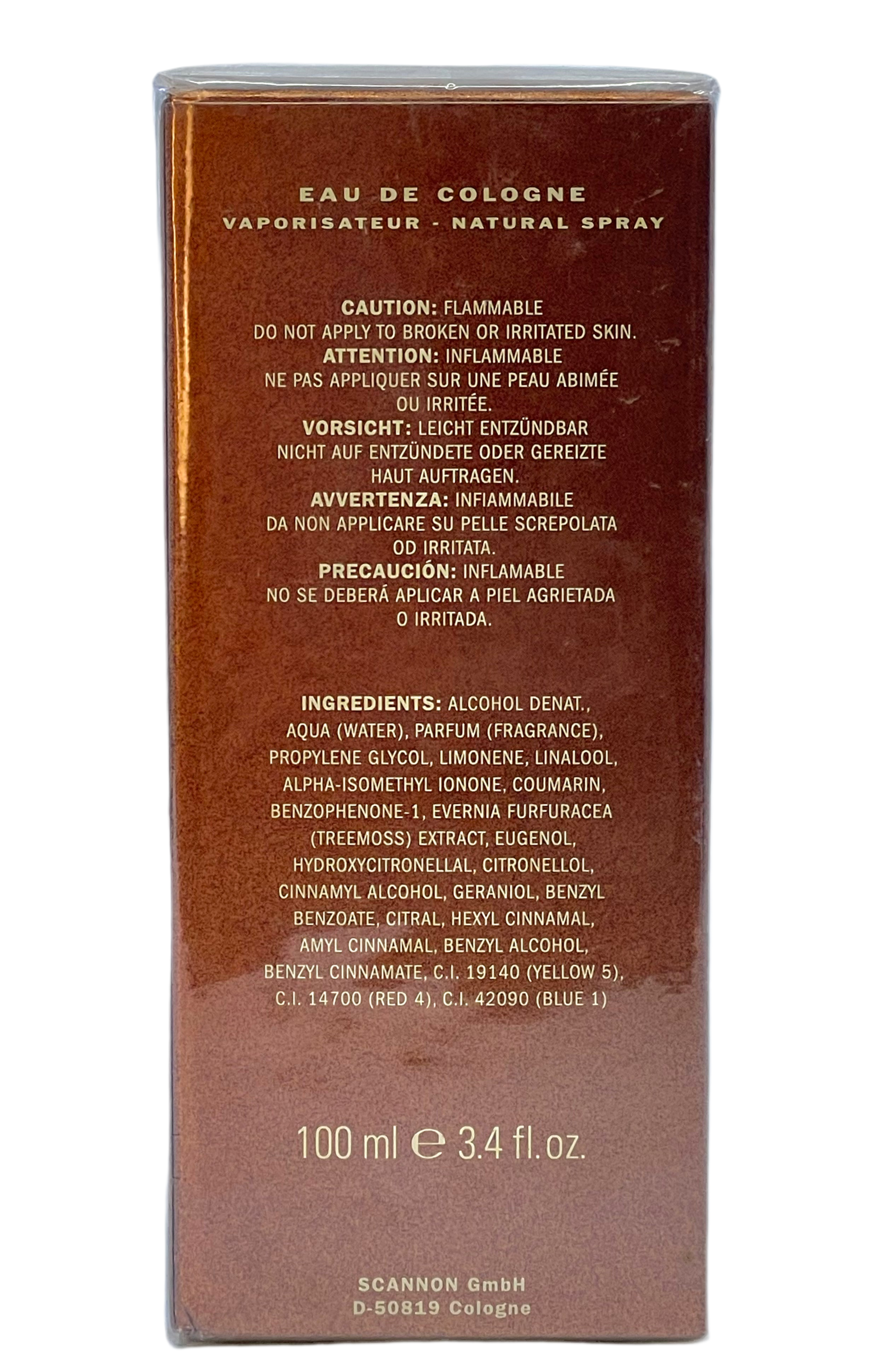 Offered is 3.3oz/100ml spray bottle of eau de cologne, sealed in the original cellophane. Made in Germany. Samples are created from a similar vintage bottle made in The Netherlands.