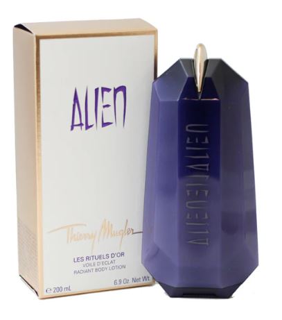Alien was created in 2005 by Dominique Ropion and Laurent Bruyere as the second fragrance for the House of Thierry Mugler. Alien is based the composition on three main lines: warm, white amber in the base, woodsy notes in the heart, and sunny Indian jasmine in the top. This fragrance has an aromatic profile of white floral, amber, woody, and floral.